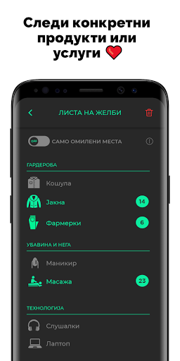 - SPOT те нотифицира веднаш штом има нов попуст на точно оние продукти и услуги кои ги имаш означено во листа на желби;