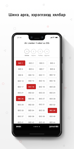 LIVE: Долоо хоног бүр BID ийн тохиролыг апп-ын LIVE цэсээр шууд дамжуулна. Тохиролоор таны BID (нэгж) сонгогдсон бол бүртгэлтэй утасны дугаар болон И-Майл хаягруу мэдэгдэх бөгөөд, тухайн бүтээгдэхүүн 1-3 хоногийн дотор таны гар дээр очих юм.