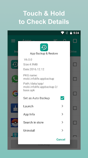 · Touch & Hold apps to check details
