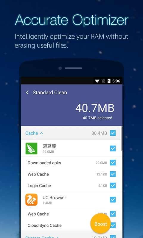 With a less than 1MB installation package, UClean can effectively boost and clean your phone.