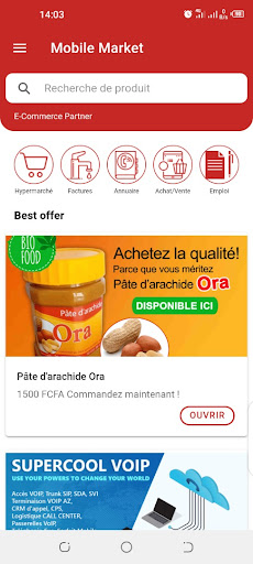 Mobile Market est une application conçue pour satisfaire certains besoins identifiés auprès des consommateurs. Il vous permet d'acheter des articles en toutes sécurités.