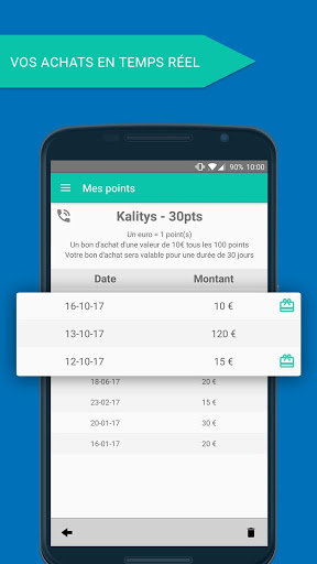 Une carte de fidélité vous permettant de transformer vos dépenses en points, et de vos points en bon d'achat (cash back) chez nos commerçants. Vous pourrez suivre vos points cumuler dans chaque magasin et recevoir leurs bons d'achats. Plus besoins d'imprimer vos bons d'achat !