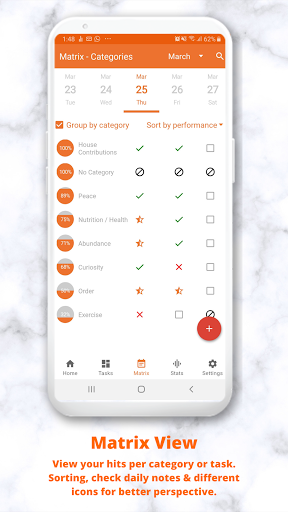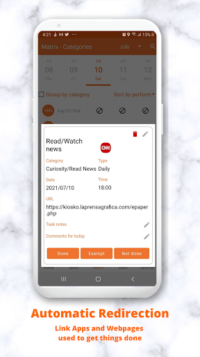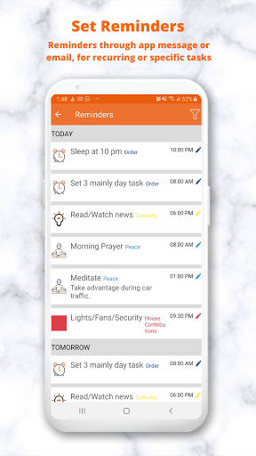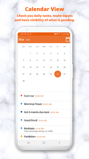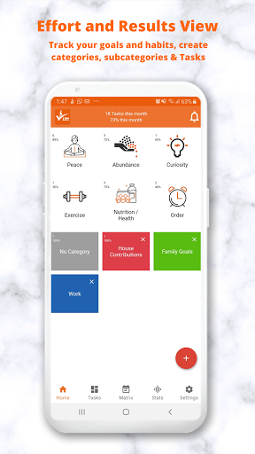 You will be able to create new categories, sub-categories, assign reminders and program recurring tasks with customized targets and metrics needed by you or simply mark a task or achievement as done or not done.