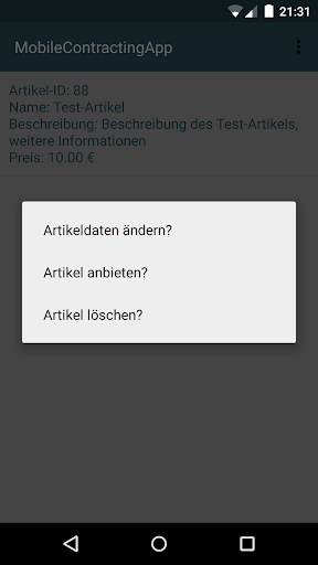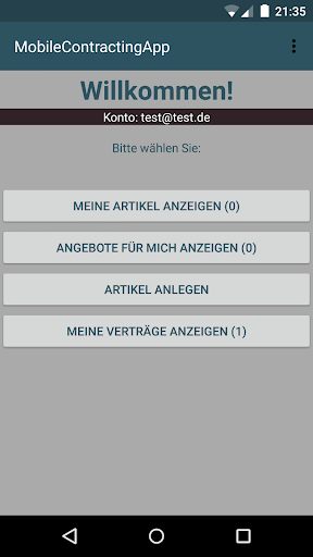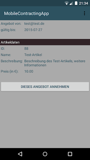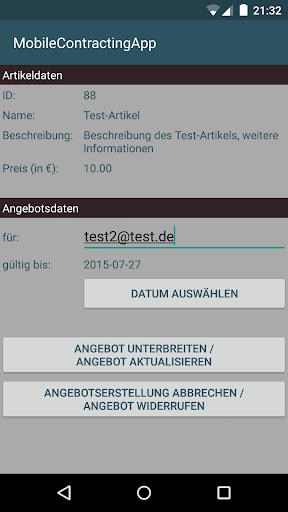 Diese Android-Anwendung demonstriert das mobile Schließen von Verträgen unter Abwesenden. Durch die synchrone Kommunikation mit einem dezidierten Server kann die Anwendung auch für das mobile Schließen von Verträgen unter Anwesenden genutzt werden.