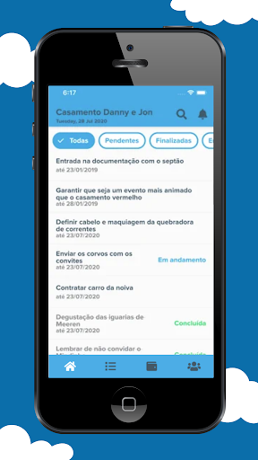 - Gestão das Tarefas: Crie, acompanhe e marque as tarefas do seu evento como finalizadas;
