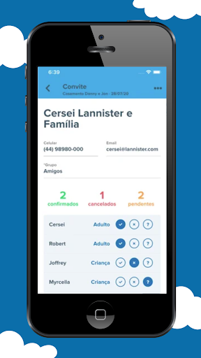 - Gestão da Lista de Convidados: Crie convites, convidados e envie o RSVP via WhatsApp;