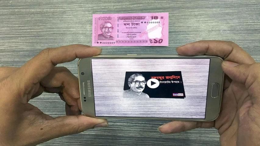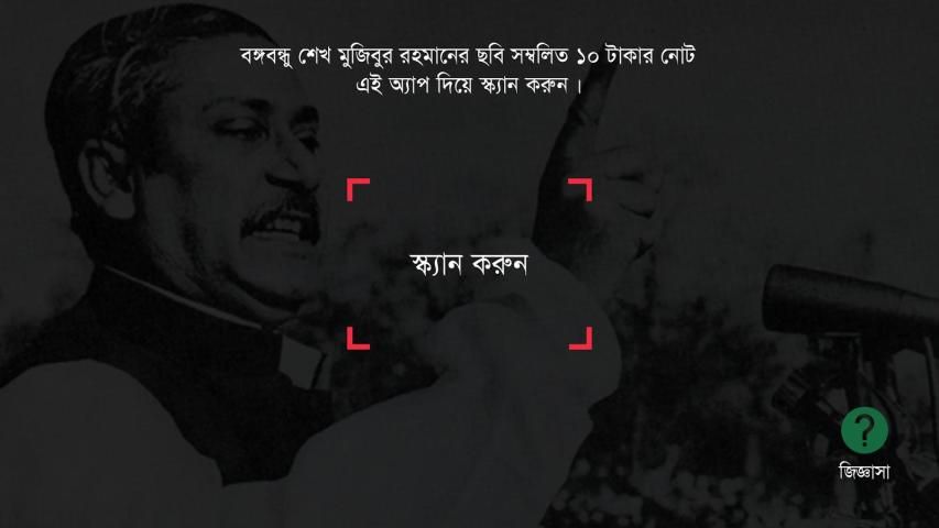 এপসটি ওপেন করে বঙ্গবন্ধুর ছবি সংবলিত ১০ টাকার নোটটির ওপর ধরুন। এপসটি স্বয়ংক্রিয়ভাবে বঙ্গবন্ধুর দুর্লভ কিছু ছবি সংবলিত একটি ভিডিও প্লে করবে।