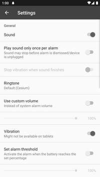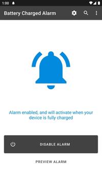 Battery Level Alarm lets you know when your battery is fully charged, so you can unplug your phone/tablet.