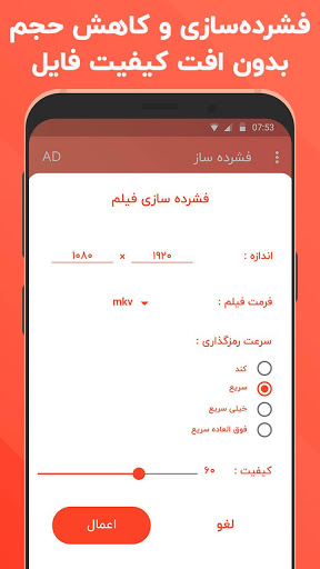 ** در صورتی که حجم فیلم و ویدئوی شما بالا باشد مدت زمان فشرده سازی طولانی خواهد شد.