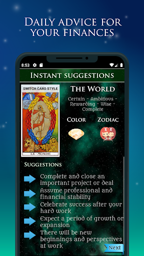 Tarot of Money is a free card reading app to get answers on your financial life and to explore your future. Discover accurate tarot predictions and psychic reading for your current situation. Observe your money issues with a new perspective whether they are related to your good fortune, career or personal life. The revelations of tarot cards will surprise you.