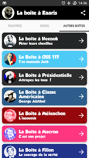 Sounds Box позволяет вам предпочитать ваши любимые звуки, чтобы быстро их найти. Загрузите приложение один раз и получите в режиме реального времени звуковых обновлений. Ваши любимые звуки будут собраны в рейтинге: щелкните и посмотрите, являются ли ваши любимые звуки, также те из других пользователей звуковой коробки!