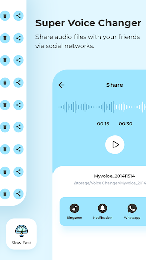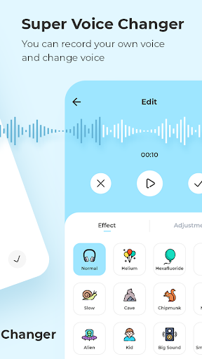 There are plenty of awesome character can be used to change your voice into male or female, child, superhero, alien and so on. Super voice changer effects is a best way to modify your voice by applying funny sound effects. You can record your own voice and change voice to a different voice changer effects or you can choose any audio file from your device and change voice of it with Super voice changer effects.