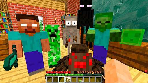 Monster School for minecraft is a big school where teachers are monsters and zombie students. You will study with them, every day a school bus comes for you. When they take you to school, take your notebooks with textbooks in your locker and go to class. In geography class, the enderman will tell you how to teleport. The physics lesson will be conducted by a zombie, he will teach you how to run fast and will maintain your health. Herobrin is the headmaster of the school, he will monitor your progress, so don't you dare skip school and study well. The spider will show you agility and you will be invulnerable. And the skeleton will teach you how to shoot a bow and other weapons. Monster High is located in the city and after school or on weekends you can take a walk. In fact, Minecraft monsters will be able to train you very well. The main thing is to listen carefully. All maps for minecraft and mods for minecraft are free in our application.