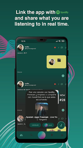 With MOOD, the user creates an own and unique profile made up of his favorite songs directly chosen in Spotify. The app lets users listening to music on Spotify enjoy an entire social network and club experience by sharing their favorite songs with others in order of preference and knowing what is being played on Spotify, not only by their friends, but by everybody nearby thanks to the location system.