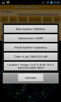with various Ayanamsa, Vedic and Popular Western House system in order