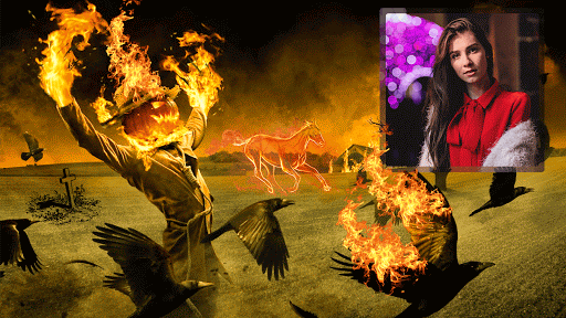 Horror Photo Frame is specially created with nice realistic and Beautiful animated Fire background, it has a huge collection of Horror gif or Scary gif.