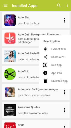 This application will extracts(share/create/generate) APK which is installed on android device and copy to SD card. And also show the list of APK available in your sdcard