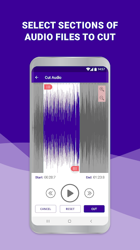 ♪ Select sections from any MP3, WAV or AAC file on your phone to cut and save with the simple MP3 trimmer.