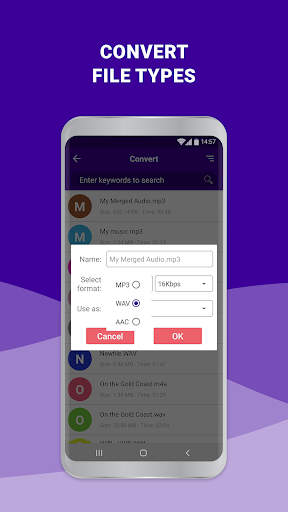 ♪ Convert audio files between MP3, WAV and AAC and save.