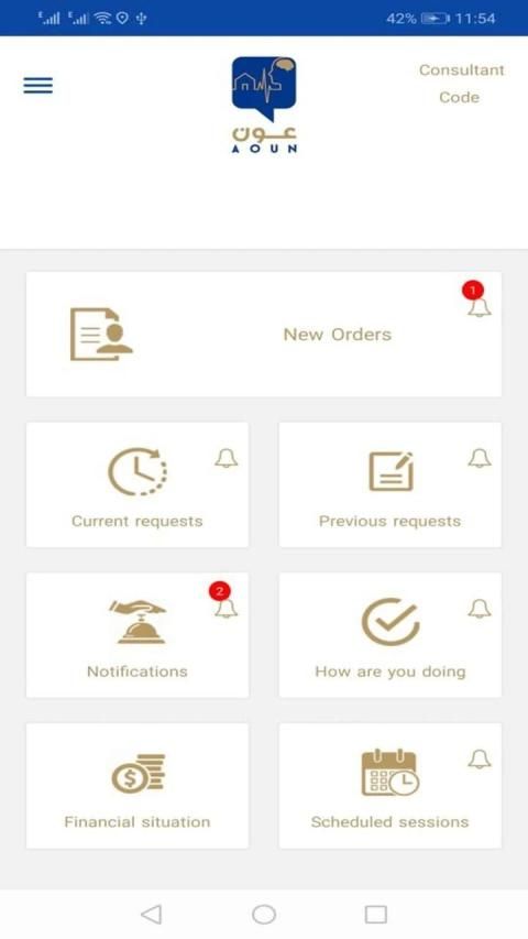 Aoun application is an electronic platform and a link between the client and the consultant to provide a paid home counseling service in the field of mental disorders and addiction.