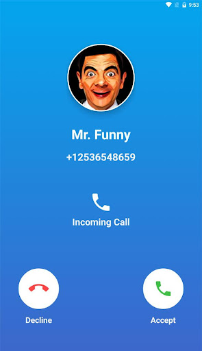 You need to call your idol mr. funny call, we are here today to give you this application that allows to you have a very funny time by being with mr. funny fake call, are you ready to simulate a mr. funny call me fake video call, yes you can prank your friend and tell them that you have an incoming call from mr. funny call me, and have fun together, and they also can install this app and having a simulation of an incoming call from mr. funny.