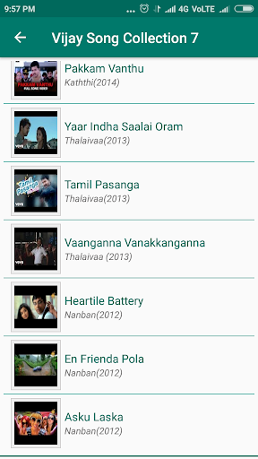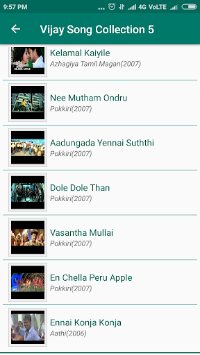 Vijay Hit Video Songs app is the best app ever with complete collection of superstar Ilayathalapathy Vijay Tamil Video Songs. In this app you will get Vijay Tamil hit songs. You can listen and watch your favorite Tamil hits of Vijay. This Vijay Tamil Super Hit Songs App is dedicated to Vijay Tamil Fans and Music Lovers.