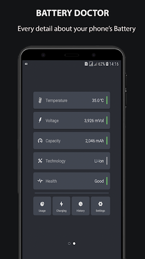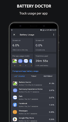 Battery Doctor is an application that can help you monitor battery health, monitor charging processes, alert when the battery is fully charged... Besides, Battery Doctor supply many utilities like Junk File Cleaner, App Manager, App Lock..., it helps you to delete unnecessary files, easily manage applications.