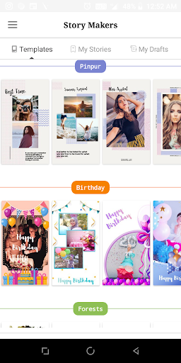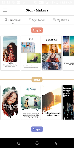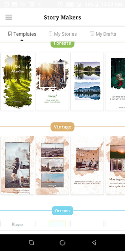 Story Maker is a free app that has lots of templates and features for you to create beautiful stories to share in the Instagram story, Snapchat story, Whatsapp status or Facebook story and etc ...