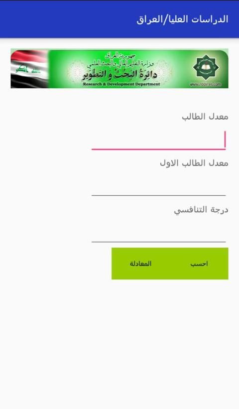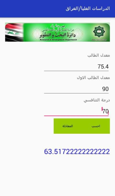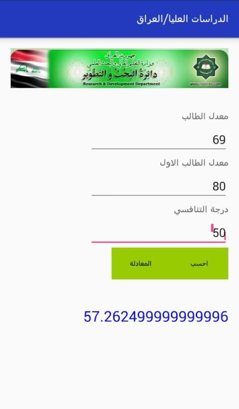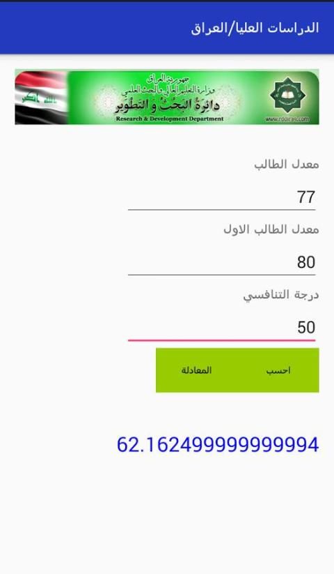 Application to calculate the final rate for applicants to study masters in Iraq based on the bachelor's rate for the student and the student himself first with the degree of competitive examination of a hundred