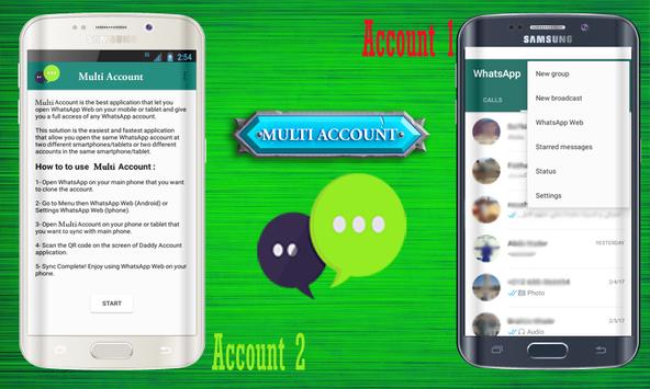 Dual Account is the only application that allows you to open Whatsapp Web on your mobile or tablet and give you full access to any Whatsapp Messenger account