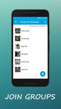 Make friends globally with this app. Let other people join your group & start conversation with them. There is no need to register in this app. We will automatically identify your device. Even if you clear data of this app, & then open app Groups for WhatsApp app, we will automatically detect your device & restore your credits.