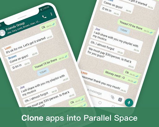 In the powerful parallel space, any application can be cloned into multiple parallel apps. These cloned apps and system applications are independent parallel apps.
