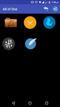 تطبيق الكل في واحد (All in one) الكل في واحد تطبيق احتوى على منظومة من التطبيقات الشيقة منها الالعاب العقلية و المساحات الكتابية وغيرها - يحتوي على خمس تطبيقات متعددة - متعدد اللغات -سهل الاستخدام