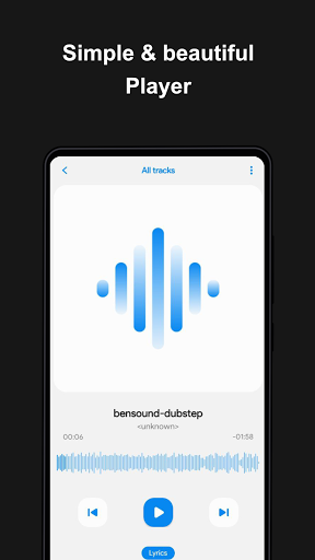 Music Player with powerful music equalizer, bass booster, and great sound virtualizer, Quick search all music files, free to get this perfect audio player and media player.
