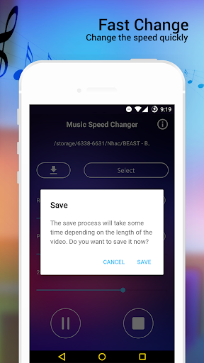 Audio speed changer is friendly app and easy to use. Just choose your audio file, select music tempo effect, and tab the change song speed button. Slow music speed up sound changer app will process and make amazing music speed up sound track.