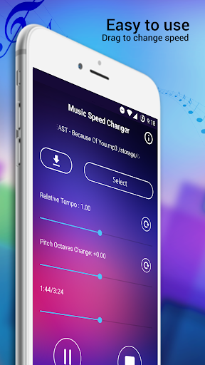 With Super music speed changer, you can select audio file, choose the region you want to play and change tempo/pitch the fly. It's music looper to slow down song speed and loop/repeat audio in a fast way.
