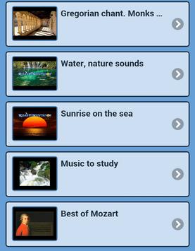 We also include in the app for a few instructional videos and improve relaxation and meditation techniques with music, while in all images eliciting relaxation music are represented.