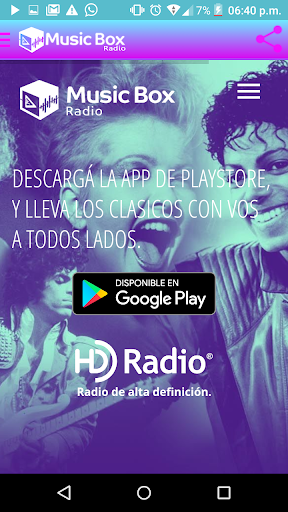Music Box Radio: www.musicboxradio.com.ar is the best way to revive the classics of the 80's, 90's, and 00's, with high definition sound. The music that was part of your life, which marked a golden time, is back in an App that will accompany you everywhere. The box is open, and it sounds stronger than ever, download, press play and volume, Music Box is a non-stop flight to the best music in the world, enjoy it! MBX Radio is a development of www.globalmd.com.ar, Santiago del Estero, Argentina.