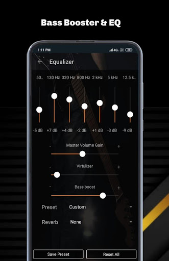 Boost your music experience with 10 amazing presets, 5 bands, bass booster, music virtualizer & 3D reverb effects adjustments and much more.