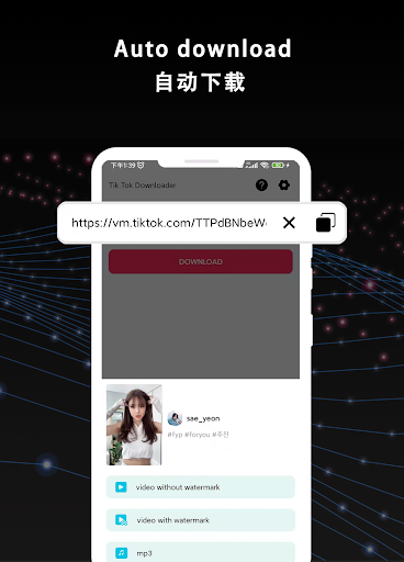 您可以从Tiktok中下载带有水印的视频。如果您想从Tiktok下载去水印的视频或仅保存音乐,请下载此应用程序,该应用程序可以保存和观看不带水印的音乐视频。