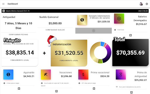 Máy tính Finchito |. Bồi thường thanh lý dựa trên Luật Lao động Liên bang Mexico.