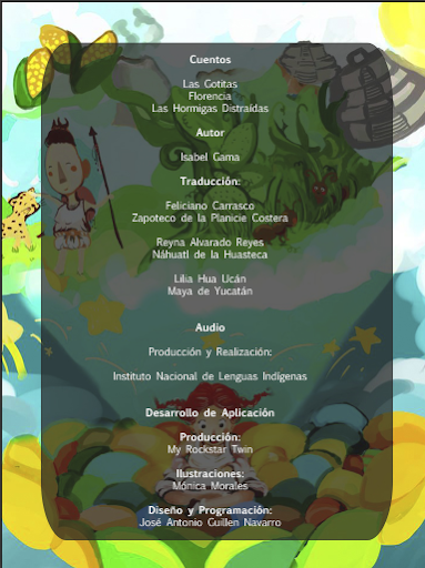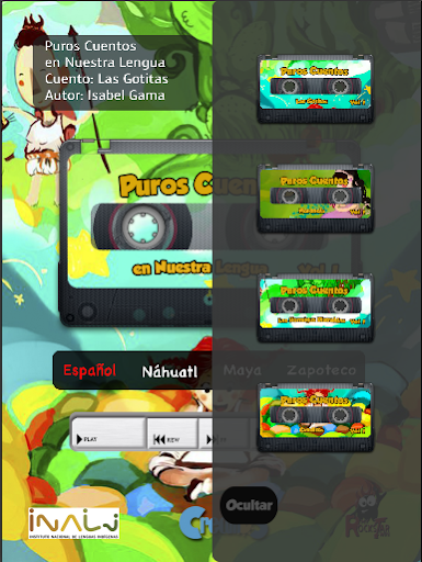 Gracias al apoyo del Instituto Nacional de Lengua Indigenas (INALI) los cuentos son narrados en Español, Náhualt, Maya y Zapoteco.