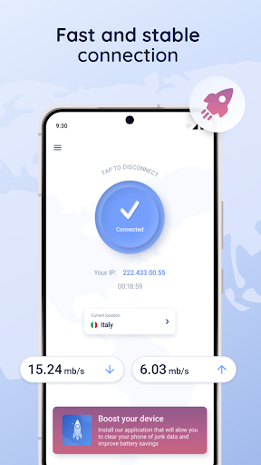 • Simple to use, one tap connect to VPN