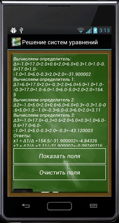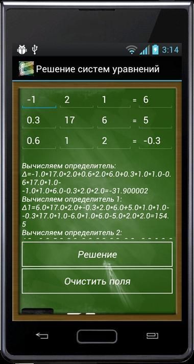 Solving systems of linear equations that can solve a system of linear equations with two, three and four unknowns. An algorithm for solving occurs by Cramer. The screen is completely painted algorithm for solving (with input coordinate data).