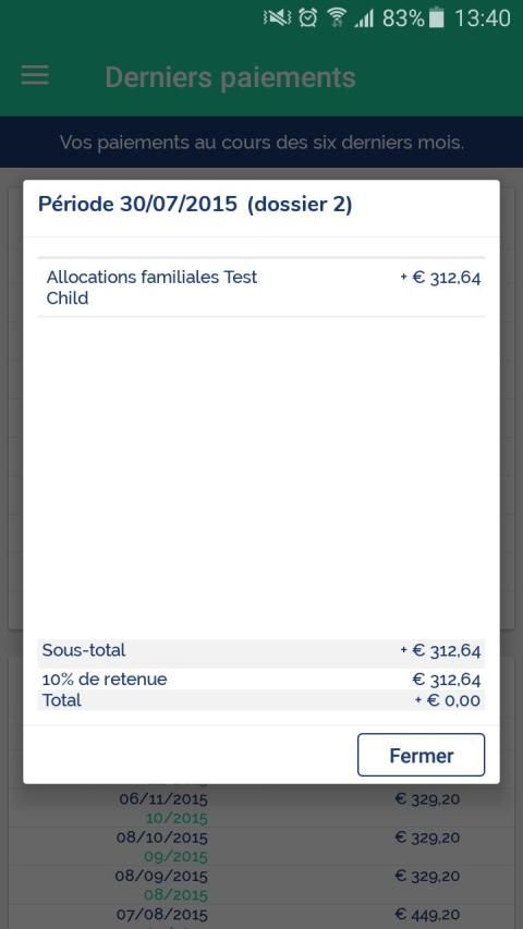 As a recipient, you can quickly go over your payments (dates and amounts) in the last six months. You can also download your certificates in PDF format on your smartphone.