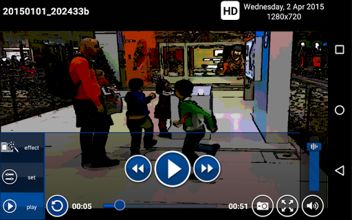 Play your 2D videos as 3D videos, with 3D video effects. 3D videos require 3D glasses to watch. Apply special video effects to your videos (watch without 3D glasses) and make them exciting. All video effects are produced on the fly, during playback without any pre-processing!