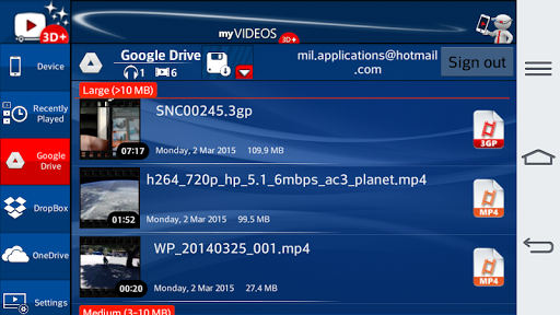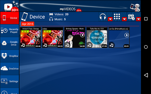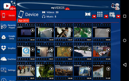 - The app. supports also playing videos/music directly from other applications (Choose the option "Open with" and select "myVideos 3D "