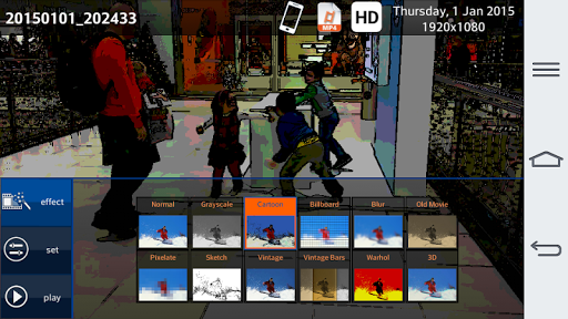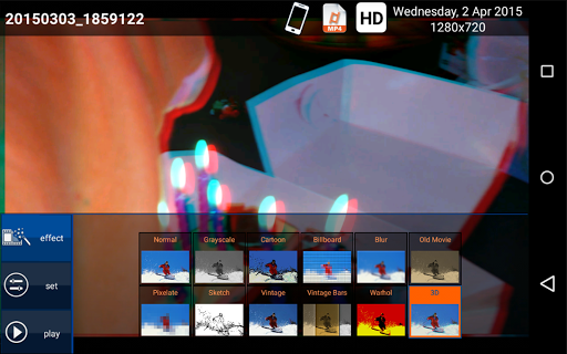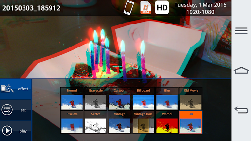 - 3D: watch your 2D recorded video in 3D (watch with anaglyph glasses – 6 types of glasses supported)