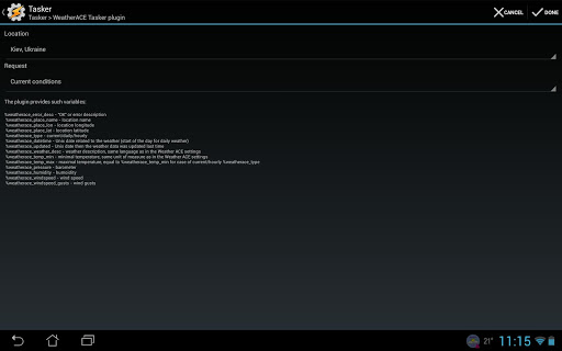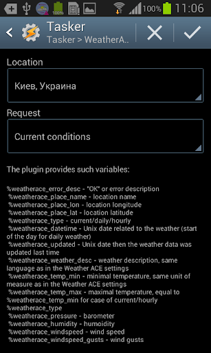 Description of Weather ACE Tasker plugin