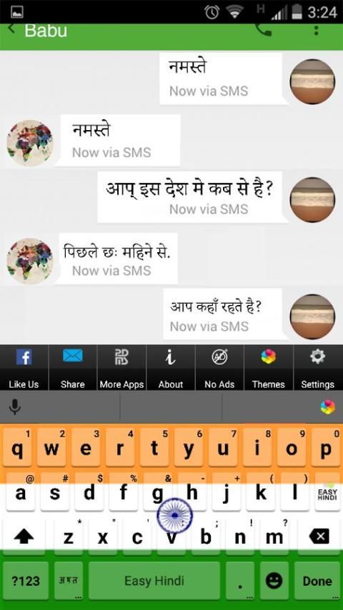 ✔ Send Hindi messages using WhatsApp, Facebook, Google Hangouts, Line, Viber or any other app installed your phone.